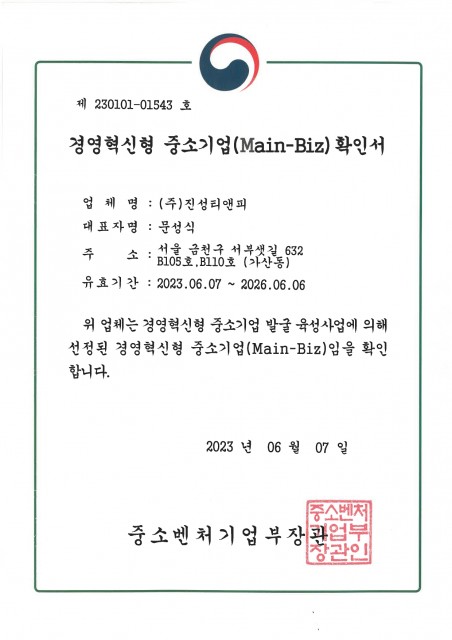 메인비즈 인증서